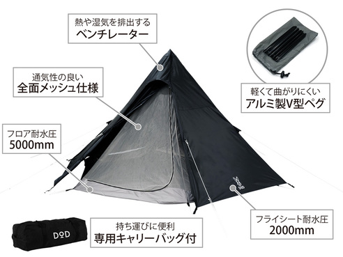 簡単に設営できてコンパクトに収納できる5人用ティピー型テント