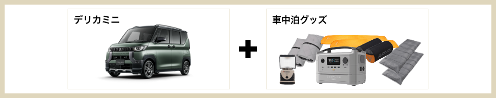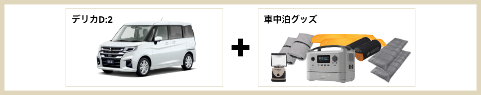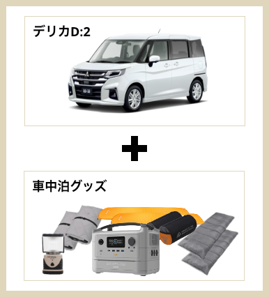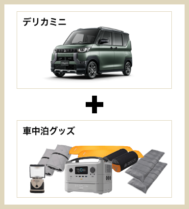 ご予約 キャンプ、車中泊セット 車のみレンタル アウトドアギアのみレンタル アウトドアギア・電化製品 ご利用ガイド 車種・料金 店舗情報 お知らせ よくあるご質問 お問い合わせ 会員登録 ログイン e-Outdoor 予約フォーム 「車中泊、旅の自由をひとまとめに」クルマひとつで、旅が始まる。 テントも寝袋も、キャンプ用品も。面倒な準備や荷造り、そして虫の心配さえも、必要ありません。クルマと車中泊に必要なすべての道具をセットにした「移動する宿泊体験」をご提供します。目的地は自由。時間も自由。必要なのは、ドアを開けて乗り込むだけ。 車中泊のプロゆうみょんさんのe-Outdoor体験も公開中! 動画再生 ゆうみょんさんコメント はじめまして、旅キャンパーのゆうみょんです♪私が実際に車中泊で使って“これは欠かせない!”と感じたギアをセレクトしました。初心者でも安心して使えて、車中泊がぐっと快適になるアイテムばかり。おしゃれに見えて、しかも実用的だから女性のソロ車中泊にもぴったりです。夜は焚き火で心を癒し、昼は日差しや雨をしっかりカバー。車中泊を快適に楽しみたい方にぜひおすすめしたいセットです! 旅キャンパー ゆうみょん兵庫県神戸市出身のインフルエンサー。旅・キャンプを中心にSNSで活動中。SNSの運用コンサル、アウトドア旅行系のアンバサダーとして、PR活動やイベント出演実績多数。キッチンカーでの地方創生活動やオリジナルキャンプギアの開発なども実施。 車中泊セットソロ(1人) 車中泊セットソロ(1人) ライトver. フルver. デリカミニ 専用サンシェード × 1 マットレス × 1 寝袋 × 1 - LEDランタン × 1 - ポータブル電源 × 1 - 金額 1泊2日 19,800円(税込)~ 1泊2日 29,800円(税込)~ 予約する ご利用の流れ → 車中泊セットデュオ(2人) 車中泊セットデュオ(2人) ライトver. フルver. デリカD:2 専用サンシェード × 1 マットレス × 2 寝袋 × 2 - LEDランタン × 1 - ポータブル電源 × 1 - 金額 1泊2日 22,800円(税込)~ 1泊2日 36,000円(税込)~ 予約する ご利用の流れ → ゆうみょんオススメ!オプショングッズ DOD スワルスエックス 邪魔にならないコンパクトさと軽さが魅力。安定感も抜群で、ソロでも安心してゆったりくつろげる私の定番チェアです。 DOD ステルスエックス テーブルにもなるスマートなゴミ箱で、ひとりキャンプの“映える整頓”が叶います!荷物を減らしたいときに頼れる存在です。 Iwatani カセットフー タフまるJr. コンパクト&軽量で女性も持ち運び楽々。風にも強いので安心して調理ができる優秀カセットコンロです。手軽にお湯を沸かしてモーニングコーヒーが私の定番です。 YETI タンドラ45 抜群の保冷力と頑丈さで安心。見た目もスタイリッシュだから、女子キャンプでも映えます。テーブル代わりにもなるところもおすすめです。 スノーピーク焚火台+焚き火ツール一式セット 焚火台一式がそろっているので、車中泊にぴったりな焚火台セットです。焚き火のぬくもりが最高の癒しです。 スノーピーク アメニティタープ ヘキサLセット 女性の車中泊に欠かせないヘキサタープです。広い日陰とUVガードで強い日差しも急な雨もおしゃれにカバーしてくれます。 諸注意関連レンタカーに関するご注意レンタカーは、「車中泊セットソロ」はデリカミニ、「車中泊セットデュオ」はデリカD:2となります。その他の車種、年式、グレード、色などはご指定できません。ご了承ください。安全に関するご注意絶対に車内で火気を使用しないでください。カセットコンロ、ストーブ、ランタンなどの燃焼器具を車内で使用すると、一酸化炭素中毒を引き起こし、死亡事故につながる危険性が極めて高いです。調理や暖を取る際は、必ず車外の換気の良い場所で行ってください。エンジンをかけたままの就寝は危険です。積雪や換気の不備により、排気ガスが車内に侵入し、一酸化炭素中毒になる恐れがあります。就寝時は必ずエンジンを停止してください。寒さ対策には、寝袋や電気毛布(ポータブル電源使用)をご活用ください。ポータブル電源やバッテリーは、高温になる場所(夏場の直射日光が当たる車内など)に放置しないでください。発火や故障の原因となります。電気製品のタコ足配線や、対応電圧を超えた使用は絶対におやめください。車中泊のマナーに関するご注意「道の駅」や「サービスエリア」は、あくまで休憩施設です。宿泊を目的とした長期間の滞在(連泊)は絶対におやめください。仮眠以上の滞在は、他の利用者の迷惑となり、施設が利用禁止になる原因となります。車中泊は、オートキャンプ場やRVパークなど、公式に許可されている場所で行うことを強く推奨します。許可なく私有地や公共の駐車場で車中泊を行うことは、トラブルの原因となりますのでおやめください。 駐車場など、キャンプが許可されていない場所で、車外にテーブルや椅子を広げての食事や団らん、タープの設営などはマナー違反です。早朝や夜間のドアの開閉音、大きな話し声、音楽などは